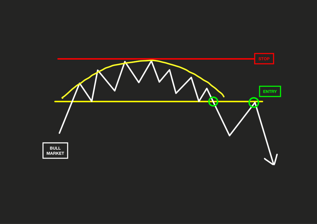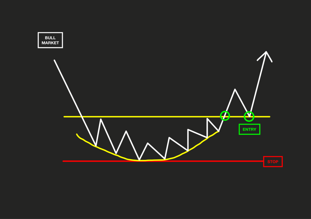 チャートパターンって昔から使われているチャートに一定の「形」みたいなものがある。ただこれを暗記したからといって、「ダマシ」で損切りラインまで削られたあとにチャートパターンの形を形成することもあるし、そもそも「ダマシ」の材料として使われてしまって、真逆に進むこともあるから鵜呑みにするのはまずいけど、